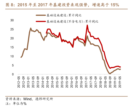 图8:2015年至2017年基建投资表现强势,增速高于15%