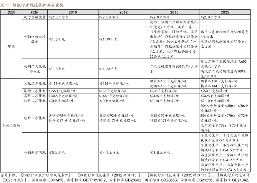 钢铁行业规范条件部分变化