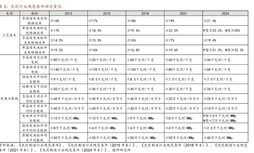 光伏行业规范条件部分变化