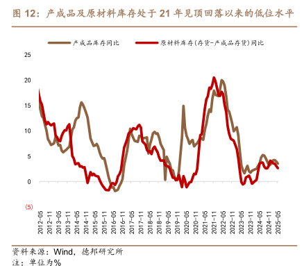 产成品及原材料库存处于21年见顶回落以来的低位水平