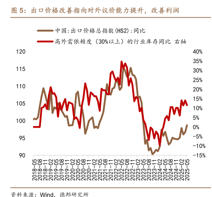 出口价格改善指向对外议价能力提升,改善利润