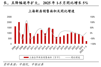 资料来源:中原地产,中银证券 备注:价格指数基准为2004 年5 月=100。方形标注为2025 年5 月房价,三角形标注为房价最高点,圆形标注为2025 年5月房价回落至的历史房价水平。 图表 48. 2025 年 5 月上海新房房价(不含保障房)为 92119 元/平,处于历史最高水平,二手房房价为 52878 元/平,较 2024 年 12 月下降 3.9%,较最高点下降 20.4%