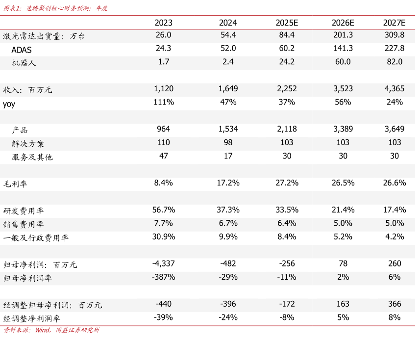 图衣1:速腾聚创核心财务预测:年度